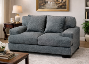 Loveseat moderno tapizado en tela gris con diseño limpio y contemporáneo. Sus cojines amplios y brazos rectos brindan gran comodidad, mientras que su estilo minimalista lo convierte en una pieza perfecta para salas modernas, aportando elegancia, funcionalidad y un ambiente acogedor.