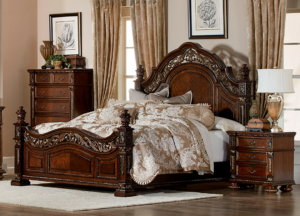 Elegante recamara con fina y delicada talla con estilo. En maderas sólidas de acanto, terminada color Cerezo tradicional. Fina talla complementa el tradicional diseño, y la ornada herreria le da un toque fino a su cama. Contamos con todas las piezas que complementan la recamara.