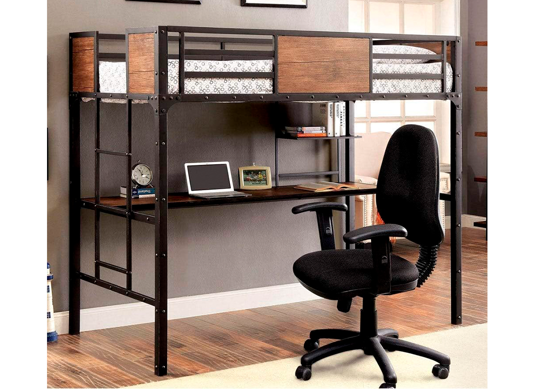 Inspire un estilo de vida utilitario con esta litera de estilo industrial. La combinación de metal y madera es una hermosa mezcla de hombre y tierra, que aporta elementos fríos y cálidos al dormitorio. La litera superior vigilada ofrece una sensación de paz y se puede acceder fácilmente desde la escalera lateral incorporada.
