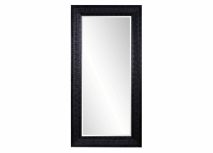 El espejo Drago tiene una presencia imponente. Cuenta con un marco rectangular grande y extragrande con acabado en piel sintética negra con textura de piel de cocodrilo. Amplía cualquier habitación al instante con solo añadirle este espejo. Esta pieza sencilla pero impactante será un complemento perfecto para cualquier espacio. Si bien el espejo Drago es el espejo de pie perfecto, también incluye anillas en D para colgarlo directamente en posición horizontal o vertical. Debido a su gran tamaño, recomendamos la ayuda de un profesional para colgarlo. También incluye herrajes de seguridad para fijarlo a la pared cuando se usa como espejo de pie.
