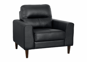 La Colección Lewes fusiona la comodidad moderna con un diseño retro. Confeccionados con piel negra 100% de primera calidad en las zonas de contacto, mientras que el resto está revestido con Piel sintética. Los brazos de riel y los asientos contorneados brindan un aspecto moderno y versátil. Cada pieza reposa sobre sólidas patas de madera con acabado marrón.