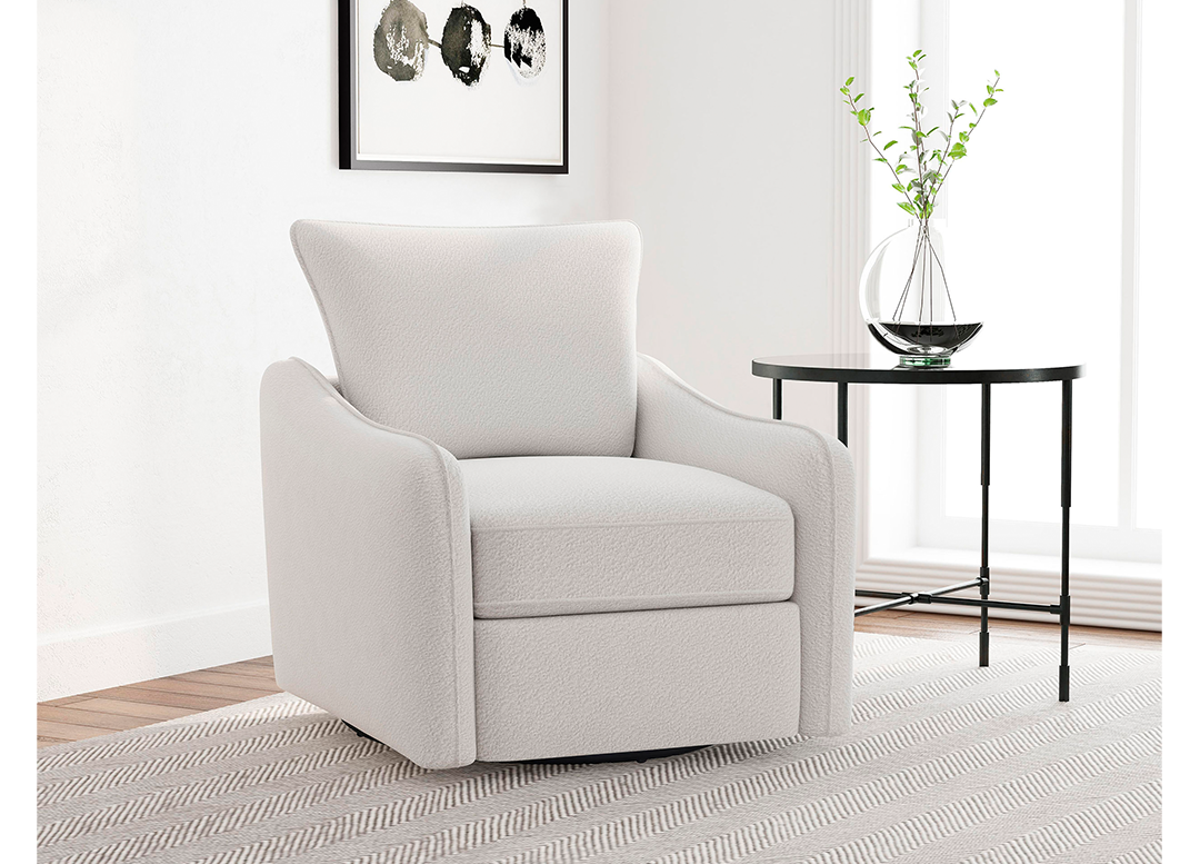 Ubicado en el suave abrazo de esta silla tapizada bouclé, uno encuentra un momento de tranquilidad. Su armoniosa funcionalidad de giro y planeador de 360 hace que cada movimiento sea una danza fluida, una suave invitación a relajarse. Los brazos meticulosamente moldeados, un testimonio de un estilo refinado, ofrecen una percha reparador para los codos cansados. A medida que la luz del día se desvanece, esta silla se convierte en un refugio preciado, su silueta es una mezcla de comodidad y encanto contemporáneo. En este rincón acogedor, el tiempo se ralentiza y la serenidad toma asiento.