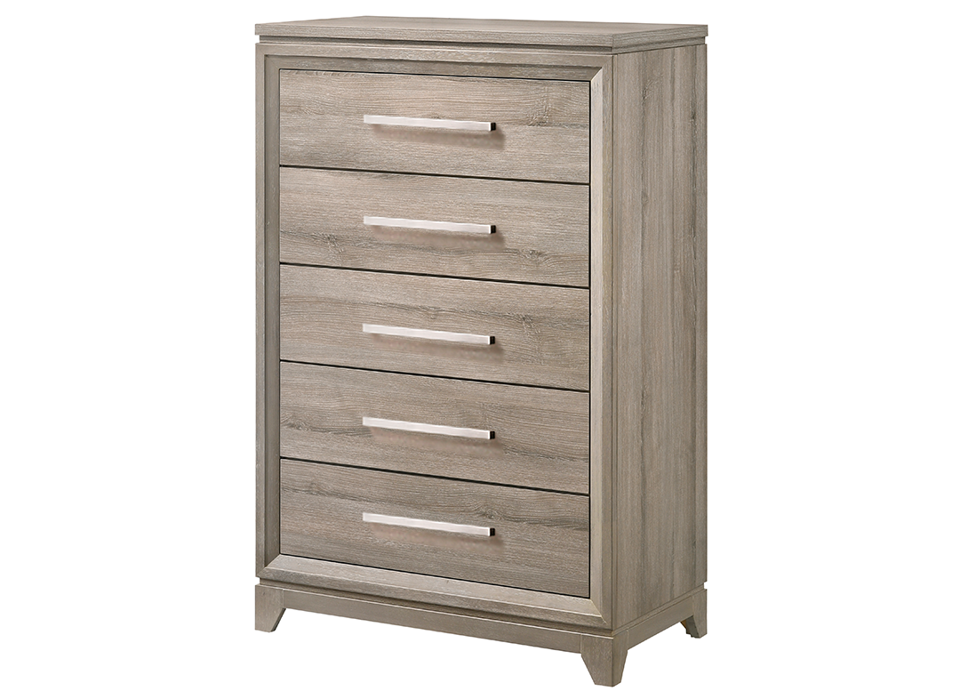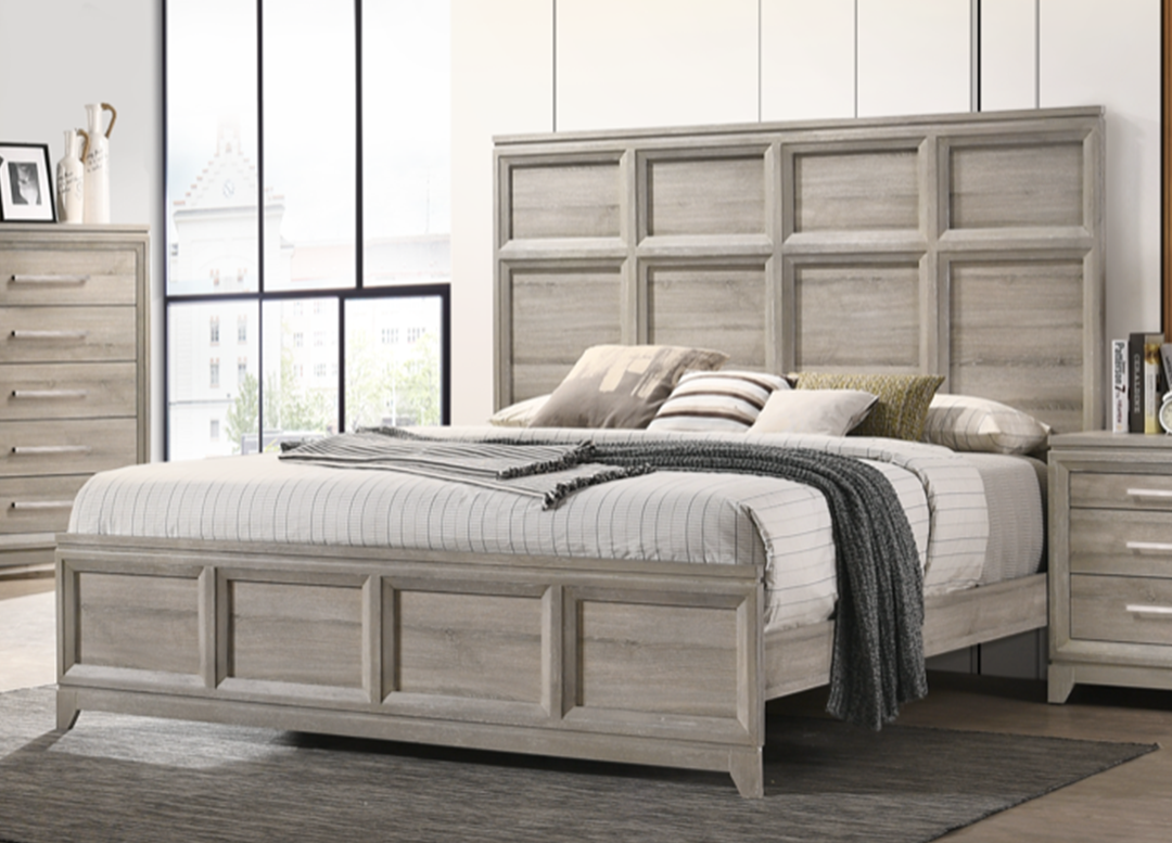 Estilo , casual y contemporáneo, es logrado en el diseño de la Recamara Stanford . Líneas rectas y limpias le dan ese toque moderno. Construida de madera industrializada con un terminado color gris claro y una estética rústica.